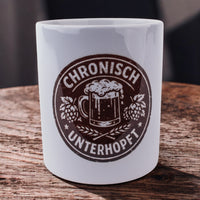 Witzige bayerische Tasse mit Motiv "Unterhopft" - ein echter Hingucker. Egal, ob im Büro oder Dahoam.