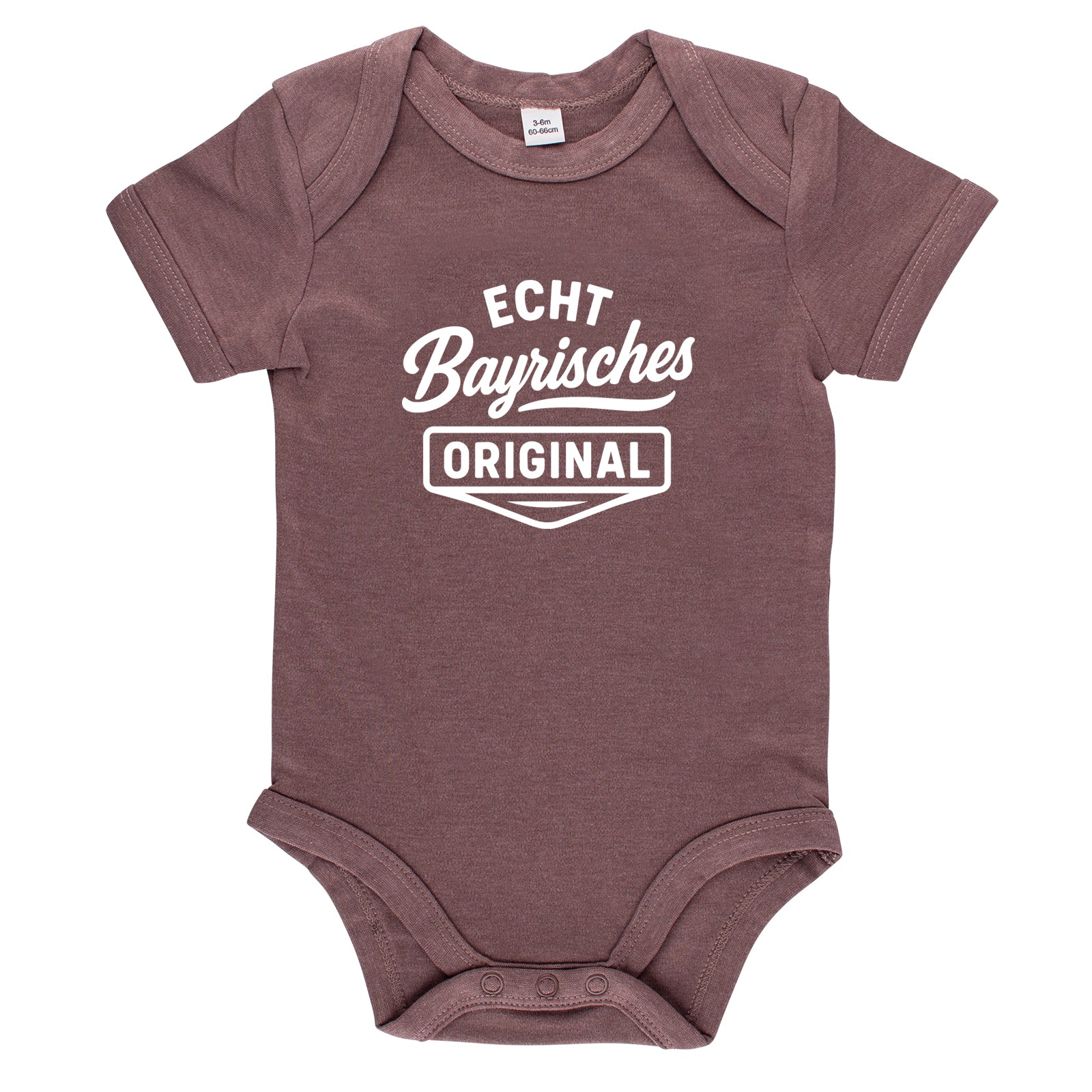 Süßer bayerischer Baby Body "Echt bayrisches Original" aus Bio-Baumwolle wird für uns vor Ort für Dich bedruckt. Ein echter Hingucker und ein tolles Geschenk zur Geburt.