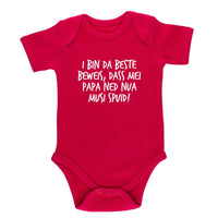 Süßer bayerischer Baby Body "Musi spuid!" der Body aus Bio-Baumwolle wird für uns vor Ort für Dich bedruckt. Ein echter Hingucker und tolles Geschenk zur Geburt.