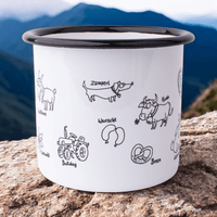 Bitte beachte: Aufgrund der Materialeigenschaften von Emaille können kleinere Unebenheiten und Einschlüsse in der Beschichtung der Tassen auftreten. Diese sind kein Reklamationsgrund.