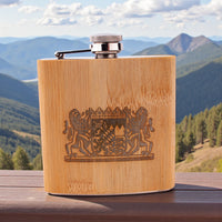 Hochwertiger Flachmann "Wappen" mit Bambus-Oberfläche. Der Flachmann wird vor Ort für Dich mit unseren Motiven veredelt.