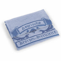Hochwertig gearbeitete Brotzeit Serviette aus festem Stoff mit dunkelblauer Motiv-Einwebung. Die Serviette kann auch als Geschirrtuch, Tischdecke/Mitteldecke oder Taschentuch verwendet werden.