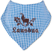 Süsses Kleinkind-Dreieckstuch mit edlem Stick "Lausbua" mit Hirsch auf weiß-blauem Karostoff. Sehr hochwertig verarbeitet mit bequemen Druckknopf. Das Tuch ist ca. 41 cm lang und passt ca. 1-3 jährigen Kindern.