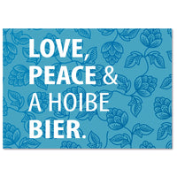 - Bayerische Postkarte "Love, Peace & A Hoibe Bier"