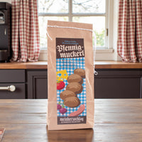 Bei den traditionellen Pfennigmuckerl handelt es sich um altbayrische Brotzeitsemmeln, die es heutzutage nur noch bei sehr wenigen Bäckern zu kaufen gibt. Ein fast schon vergessene bayerische Spezialität, die wir mit unserer Backmischung wieder aufleben lassen wollen.