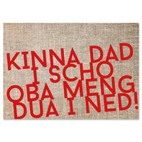 Hochwertige Postkarte "Kinna dad i scho oba meng dua i ned!" im DIN A6-Format (14,8 x 10,5 cm). Die Postkarte auf dicken Postkarten-Chromokarton (300g) gedruckt.