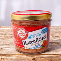 Unser Haxenfleisch im Glasl wird für uns in Bayern von Mehlig & Heller im fränkischen Veitshöchheim hergestellt. Für unser Original Haxenfleisch verwenden die Metzgermeister nur die saftige, hintere Schweinshaxe. Dieses magere und aromatische Fleisch wird mit einer würzigen Aspik-Sülze im Glas verfeinert. Das Haxenfleisch ist laktosefrei, von Natur aus glutenfrei und ohne gemacksverstärkende Zusatzstoffe.