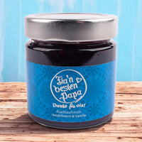 Süße Geschenkidee für die besten Papas der Welt: Unser Fruchtaufstrich "Heidelbeere & Vanille" mit süßem Sonderetikett.