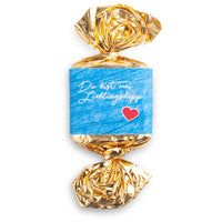 Unser Nougat-Busserl "Lieblingsdepp" in Goldfolie gewickelt. Manche nennen Sie schlicht eine Nougat-Praline - aber für uns ist es eine echte Offenbarung. Mit viel Liebe in Bayern für dich herstellt! Und die Liebe schmeckt man ... hmmmmm lecker! :-)