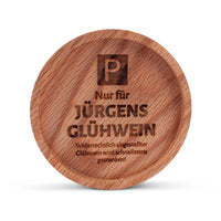 Rustikaler Holz-Untersetzer "Glühwein mit Wunschname" aus massiver Eiche. Die Untersetzer werden vor Ort für Dich graviert.