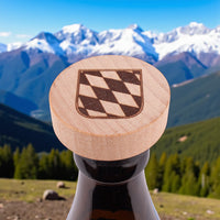 Witziger Holzstopsl "Bayerisches Wappen" für alle gängigen Kronkorkenflaschen. Schützt dein Getränk perfekt gegen Insekten, Staub und den nervigen Banknachbarn! :-)