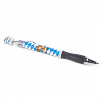 Witziger Bayern-Kugelschreiber in weiß-blauer Rauten-Optik mit Wappen. Am Kugelschreiber-Ende ist ein kleiner weiß-blauer Bierkrug aufgebracht.