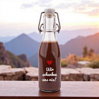Likör oder wahlweise Schnaps "Wir schenken uns nix!" in der hübschen Bügelflasche. Der "Inhalt" kann frei gewählt werden. Wir dekorieren die Flasche just-in-time nach deinen Wünschen.