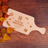 A Brotzeitbrettl, a Brotzeitmesser und a guade Brotzeit und schon wiads g'miatlich. Unser Brotzeitbrett "Brotzeit-Parkplatz" ist ein echter Hingucker. Wir gravieren es mit dem gewünschten Wunschnamen.