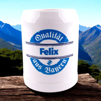 Unser Kinderkrug "Qualität aus Bayern" mit Wunschnamen ist eine echt goldige Idee zur Geburt. So kann der kleine Bayer bzw. die kleine Bayerin gleich standesgemäß mit anstoßen!