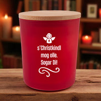 Unsere bayrische Duftkerze "s'Christkindl mog olle!" ist ein echter Hingucker. Wahlweise in schwarz (Duft: Sandelholz), rot (Duft: Zimt) oder weiß (Duft: Vanille).