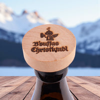 Witziger Holzstopsl "B'suffas Christkindl" für alle gängigen Kronkorkenflaschen. Schützt dein Getränk perfekt gegen Insekten, Staub und den nervigen Banknachbarn! :-)