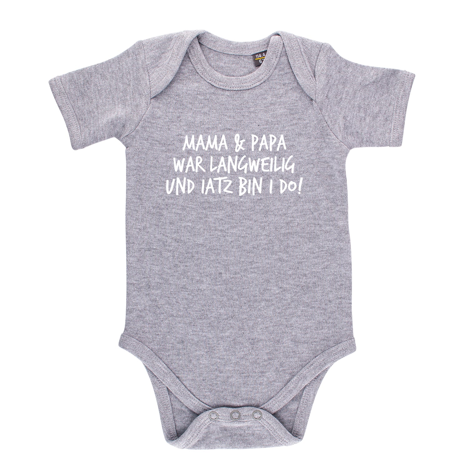 Süßer bayerischer Baby Body "Iatz bin i do" der Body aus Bio-Baumwolle wird für uns vor Ort für Dich bedruckt. Ein echter Hingucker und tolles Geschenk zur Geburt.