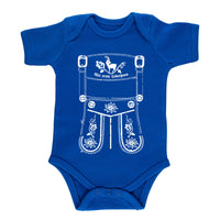 Was braucht ein kleiner Bayer möglichst zur Geburt? Richtig! Die erste Babylederhose! Unsere erste Babylederhose  ist ein schnittiger Baby-Body mit zünftigem Motiv, mit Gamsbock und Eichenblatt-Ranken. Der Body ist sehr hochwertig gearbeitet. Unser Body schaut somit nicht nur gut aus, sondern ist auch für unsere Kleinsten absolut unbedenklich.