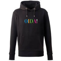 Bei unserem Hoodie "OIDA! bunt" machen wir keine Kompromisse: Top-Qualität, 100% Bio-Baumwolle, vegan, fair-trade gehandelt und der Hoodie wird von uns für Dich vor Ort bedruckt.