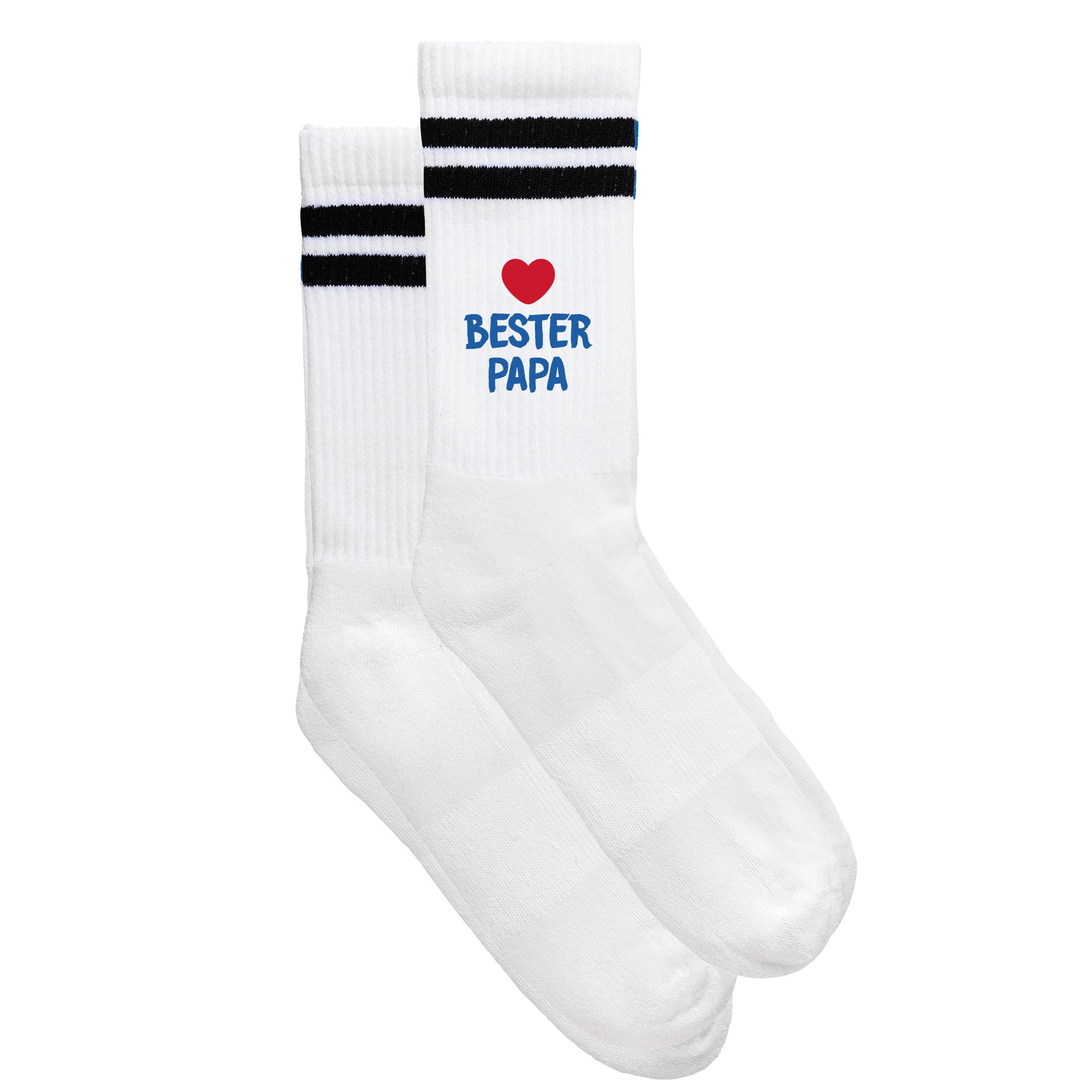 Sportsocken "Bester Papa" - ein echter Hingucker - egal ob dahoam, im Gym oder im Büro. Die Socken werden vor Ort für Dich just-in-time bedruckt.